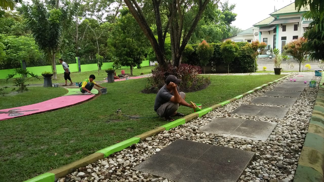 Bidang Pertamanan Dinas Perumahan dan Permukiman Kota Banjarbaru melakukan kegiatan pengecatan ulang di sekitar area halaman kantor. Lidia Anggeraini, ST, Kepala Seksi Pertamanan mengatakan bahwa pengecatan ini dilakukan guna mempercantik taman kantor dan perawatan ini memang penting untuk menjaga agar selalu tampak bersih.