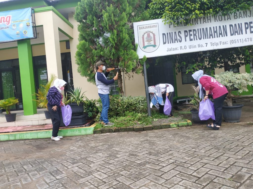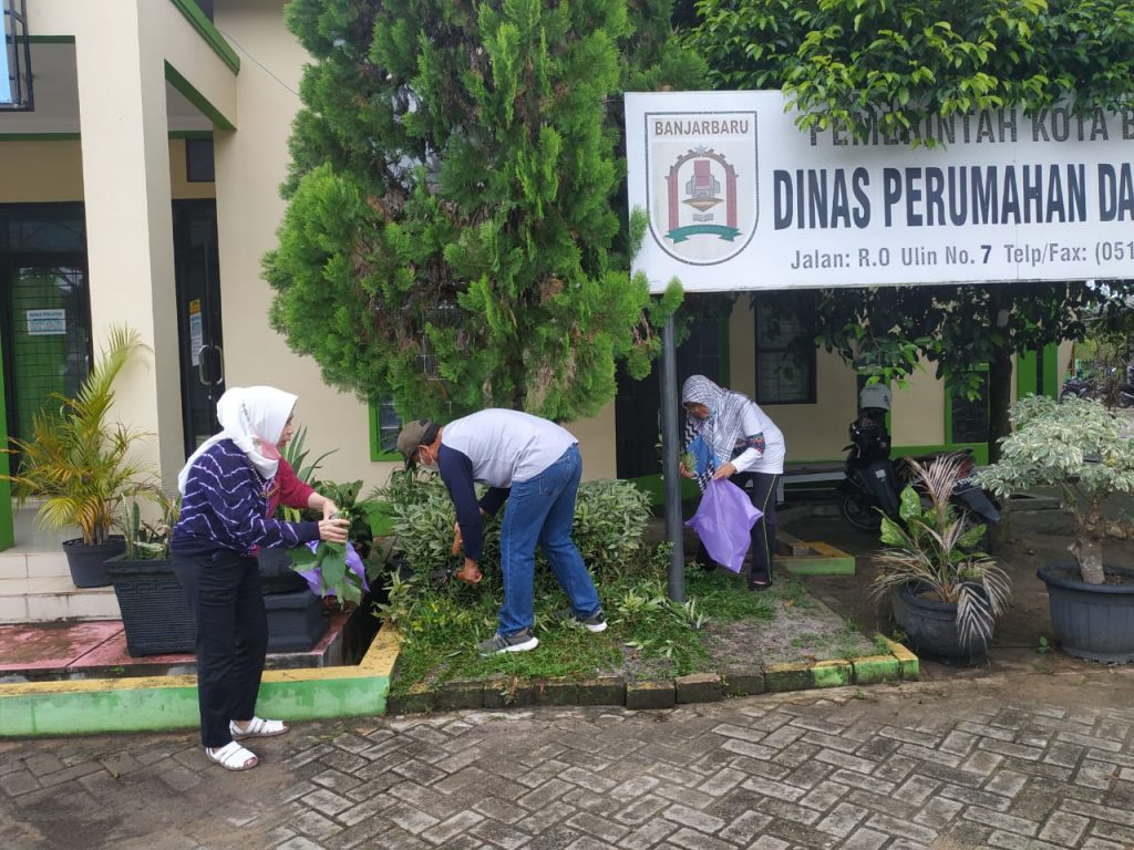 Jumat Pagi, pegawai Disperkim Kota Banjarbaru melakukan giat gotong royong mandiri di lingkungan SKPD dalam rangka mengantisipasi terjadinya genangan air pada musim penghujan, karena tersumbatnya selokan. 05/11/2021(***/dani)