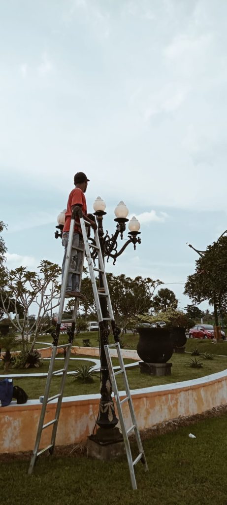 Kabid Taman mengatakan ” Ini hanya perawatan rutin dengan mengganti lampu yang sudah mati atau rusak dan kabel korslet,”.