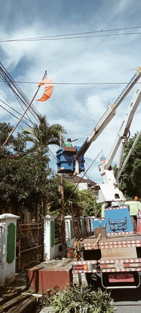 Nampak beberapa personel dari pihak PJU Dinas Perumahan dan Permukiman membantu pemasangan jalur arus lampu lampion. “Memasang lampu hias di jalan dan rumah sudah menjadi tradisi untuk memeriahkan bulan suci Ramadhan, masing-masing lingkungan RT memasang sebagai ungkap suka cita kami menyambut Ramadhan,” kata Kepala Sarana Utilitas Disperkim Banjarbaru, Anwar Delmi. (***/dani)