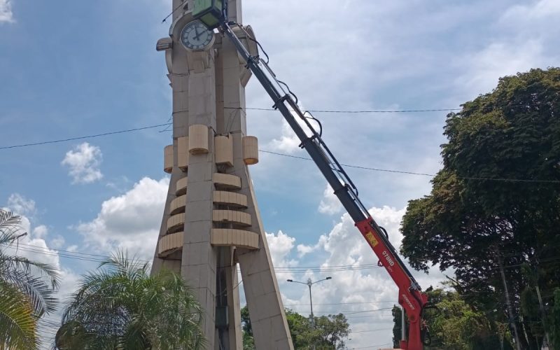 Bidang Sarana dan Utilitas Dinas Perumahan dan Permukiman Kota Banjarbaru melakukan perbaikan jam pada tugu adipura sekaligus membersihkan gulma/ rumput liar. Tim PSU berangkat Rabu, 5/4/2023 dengan membawa satu buah alat transportasi crane ke lokasi di Jalan Ahmad Yani dekat dengan rumah Dinas Wali Kota Banjarbaru.