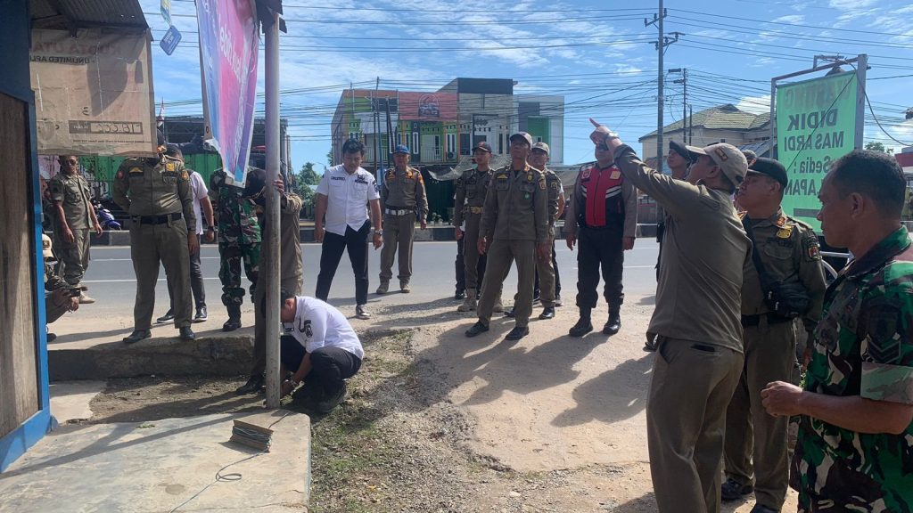 Pemotongn reklame yang tidak berizin di JL. Ayani KM 23