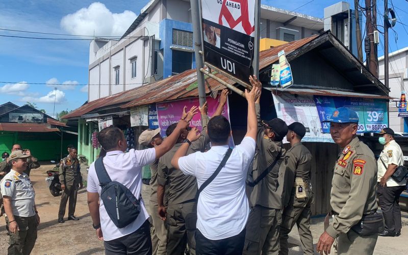 Pemotongn reklame yang tidak berizin di JL. Ayani KM 23