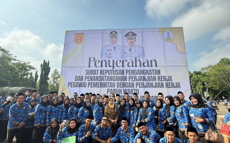 Sebanyak 1.451 orang tenaga non ASN Pemerintah Kota Banjarbaru menerima SK Pengangkatan Pegawai Pemerintah dengan Perjanjian Kerja (PPPK) Paruh Waktu yang diserahkan langsung oleh Wali Kota Banjarbaru Hj. Erna Lisa Halaby bertempat di Lapangan Dr. Murdjani Kota Banjarbaru pada Senin (20/10/2025).